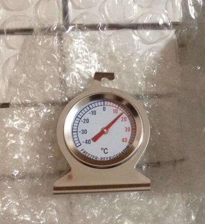 但是,保鮮食物也要一定的溫度要求,特別是水果,適宜的貯藏溫度可以將水果的代謝消耗降低到最低,但又不至于造成低溫傷害。大部分蘋果品種的適宜冷藏溫度在0- -1℃,氣調(diào)貯藏的溫度可以比冷藏高0.5-1℃。適宜的低溫可以減輕蘋果的虎皮病、斑點病、衰老褐變等到生理病害,也可以在一定程度抑制病原菌的活動,減輕微生物病害。有些品種對溫度比較敏感,長期在0℃下貯藏會發(fā)生果心、果肉褐變等生理病害。因此,其貯藏溫度宜在2-4℃。 那么怎么控制這個溫度呢?下面給大家介紹一款冰箱專用溫度計,它是雙金屬溫度計的一種,精度很高。