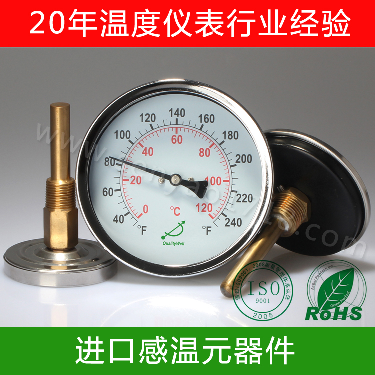 這種溫度計(jì)通常安裝在熱水鍋爐系統(tǒng)的鍋爐出口、分水器和集水器上,也有安裝在回水總干管上的。