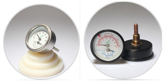 溫度壓力一體表也叫水高計(jì),它可以測(cè)量壓力 PSI 和 KPA,及水溫的攝氏度和華氏度??捎玫谋肀P(pán)大小是70mm 和 80mm。配有設(shè)定點(diǎn)指示器,另外,牙頭、感溫管長(zhǎng)度和溫度范圍可以根據(jù)需要定制。還可以做全不銹鋼、黑鐵殼及銅結(jié)構(gòu)的水高計(jì)。水高計(jì)是專(zhuān)門(mén)為熱水供熱系統(tǒng)、熱水鍋爐、游泳池等設(shè)備設(shè)計(jì)的,可以給出一個(gè)快速和準(zhǔn)確的溫度指示。