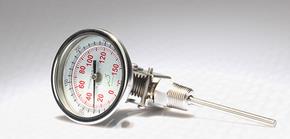 雙金屬溫度計是一種測量中低溫度的現(xiàn)場檢測儀表。可以直接測量各種生產(chǎn)過程中的-80℃-+500℃范圍內(nèi)液體蒸汽和氣體介質(zhì)溫度。主要的元件是一個用兩種或多種金屬片疊壓在一起組成的多層金屬片,利用兩種不同金屬在溫度改變時膨脹程度不同的原理工作的。優(yōu)點是現(xiàn)場顯示溫度,直觀方便;安全可靠,使用壽命長;品種齊全,適應(yīng)于各種現(xiàn)場安裝的需要。