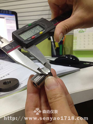 4.根據(jù)圖紙的參數(shù),用卡尺測(cè)量螺紋的孔徑。