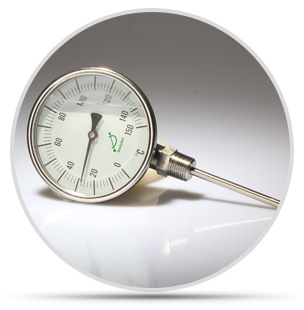 充油溫度計就是在普通的雙金屬溫度計的表頭充入硅油或者甘油,起到減震的作用。充油雙金屬溫度計主要用在工業(yè)設(shè)備中,有些壓力容器的工作壓力比較高,而且使用環(huán)境震動厲害,這個時候普通的雙金屬溫度計就無法滿足使用要求,需要用到充硅油雙金屬溫度,如圖所示:
