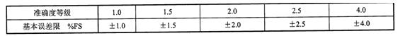1.     基本誤差,基本誤差一溫度計(jì)量程的百分?jǐn)?shù)表示。應(yīng)不超過(guò)下表的規(guī)定: