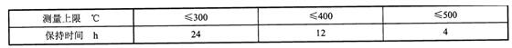 8.     熱穩(wěn)定性,溫度計(jì)的檢測(cè)元件在測(cè)量上限保持下表規(guī)定的時(shí)間后,其基本誤差扔應(yīng)符合規(guī)定。