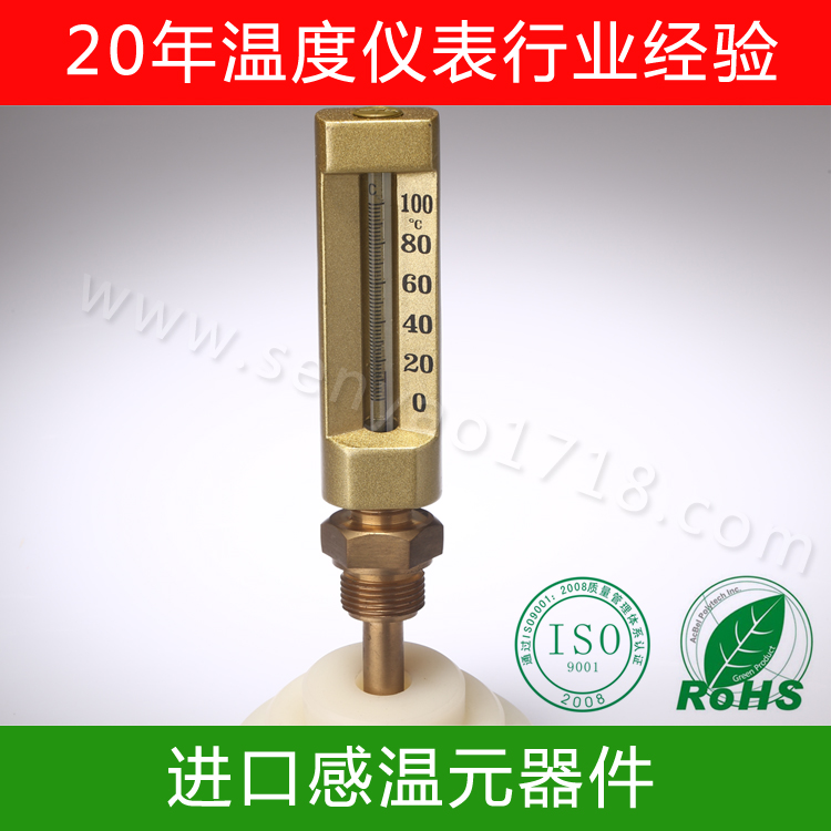 因為在船上,所以溫度計也是要耐震的,V型船用溫度計就是一個很好的耐震并且可以快速測出管道內(nèi)液體溫度的溫度計。這種V型船用溫度計一般分為直型和90℃角型兩種,它的上體材料是鋁的,經(jīng)過拋光或者噴砂并且在經(jīng)過陽極氧化之后呈現(xiàn)很好看的金黃色。其中的玻璃毛細血管種的液體一般性是煤油的,里面會加色素,呈現(xiàn)的顏色一般是藍色或者紅色的,而且毛細血管的得長短是可以定制的。
