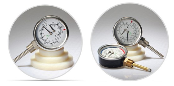 溫度壓力一體表也叫水高計(jì),它可以測(cè)量壓力PSI和KPA,及水溫的攝氏度和華氏度。可用的表盤大小是70mm和80mm.配有設(shè)定點(diǎn)指示器,另外,牙頭、感溫管長度和溫度范圍可以根據(jù)需要定制。還可以做全不銹鋼、黑鐵殼及銅結(jié)構(gòu)的溫度壓力一體表。