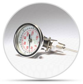 雙金屬溫度計(jì)是一種測(cè)量中低溫度的現(xiàn)場(chǎng)檢測(cè)儀表??梢灾苯訙y(cè)量各種生產(chǎn)過程中的-50℃-+500℃范圍內(nèi)液體蒸汽和氣體介質(zhì)溫度。雙金屬溫度計(jì)是用繞成螺紋旋形的熱雙金屬片作感溫元件,并將它裝在保護(hù)套內(nèi),一端固定(固定端),另一端(自由端)連接在一根細(xì)軸上,軸端裝有指針。當(dāng)溫度發(fā)生變化時(shí),感溫元件的自由端隨即轉(zhuǎn)動(dòng),從而細(xì)軸帶動(dòng)指針產(chǎn)生角位移,在標(biāo)度盤上指示出溫度的變化由于感溫元件與溫度變化呈線性關(guān)系,所以雙金屬溫度計(jì)指針?biāo)甘镜奈恢眉词潜粶y(cè)溫度值。