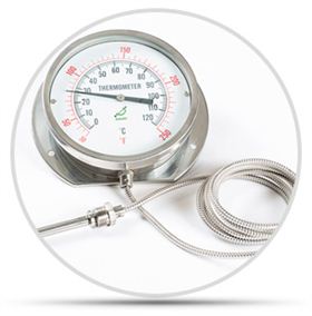 它是由充滿感溫介質(zhì)的溫度包、傳壓元件(毛細(xì)管)及壓力敏感元件(彈簧管)構(gòu)成的全金屬組件。溫包內(nèi)充填的感溫介質(zhì)有氣體、或蒸發(fā)液體等。測(cè)溫時(shí)將溫包置于被測(cè)介質(zhì)中,溫包內(nèi)的工作物質(zhì)因溫度升高體積膨脹而導(dǎo)致壓力增大。該壓力變化經(jīng)毛細(xì)管傳遞給彈簧管并使其產(chǎn)生一定的形變,然后借助齒輪或杠桿等傳動(dòng)機(jī)構(gòu),帶動(dòng)指針轉(zhuǎn)動(dòng),指出相應(yīng)的溫度。由此可以看出,溫包、毛細(xì)管及彈簧管時(shí)其重要的三個(gè)組成部分。